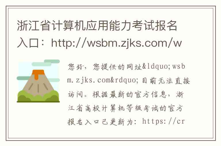 您好,您提供的网址“wsbm.zjks.com”目前无法直接访问。根据最新的官方信息,浙江省高校计算机等级考试的官方报名入口已更新为:https://crcs.zjzs.net/ 。