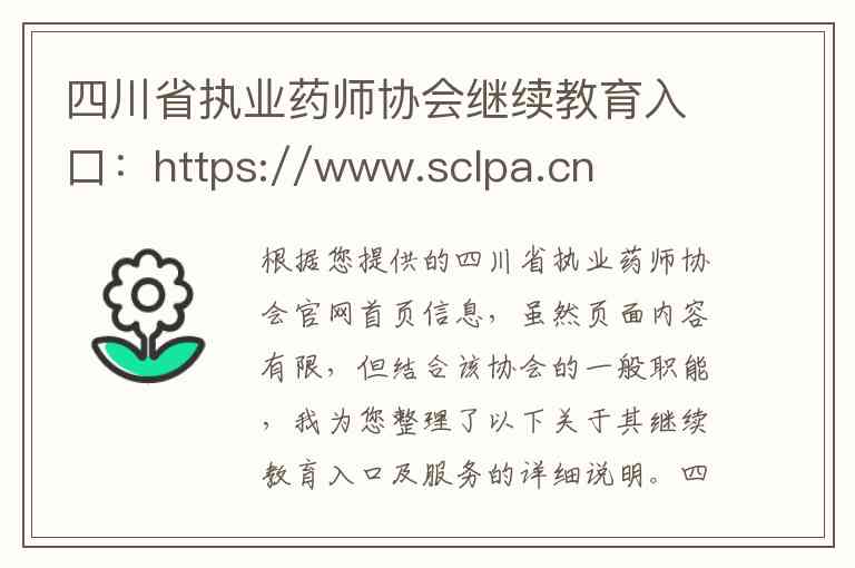 根据您提供的四川省执业药师协会官网首页信息,虽然页面内容有限,但结合该协会的一般职能,我为您整理了以下关于其继续教育入口及服务的详细说明。