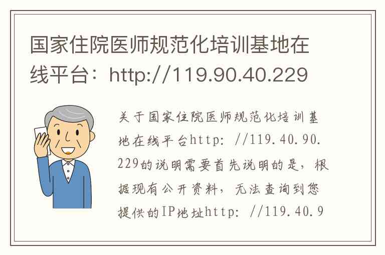 您提供的链接http://119.40.90.229可能指向上述某个系统的特定服务器地址,或是一个仅供内部人员使用的局域网络入口。如果您是某个培训基地的学员或工作人员,建议直接咨询您所在基地的科教科或毕业后教育办公室,以获取最准确的内部访问指引。同时,请注意识别网络信息来源,通过上述提及的官方主渠道办理核心业务,以确保信息安全和流程合规。