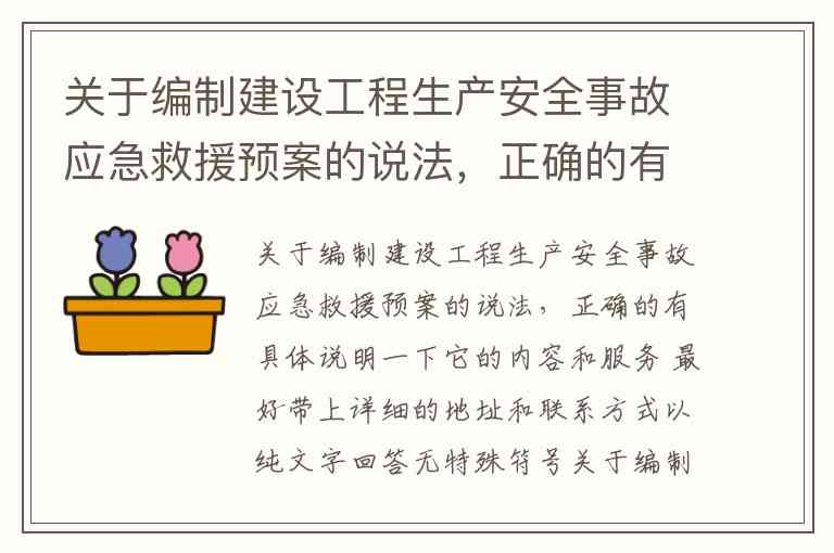 关于编制建设工程生产安全事故应急救援预案的说法,正确的有具体说明一下它的内容和服务 最好带上详细的地址和联系方式以纯文字回答无特殊符号