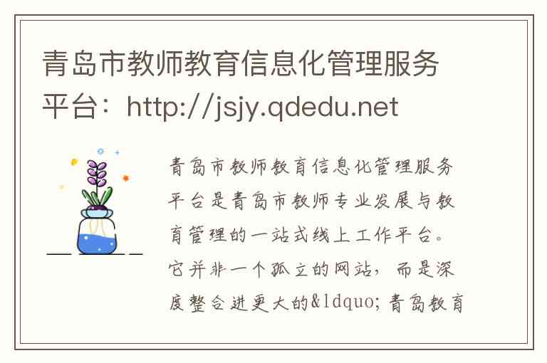 青岛市教师教育信息化管理服务平台是青岛市教师专业发展与教育管理的一站式线上工作平台。它并非一个孤立的网站,而是深度整合进更大的“青岛教育e平台”体系,为全市教师提供继续教育、教学管理、资源获取等核心服务。