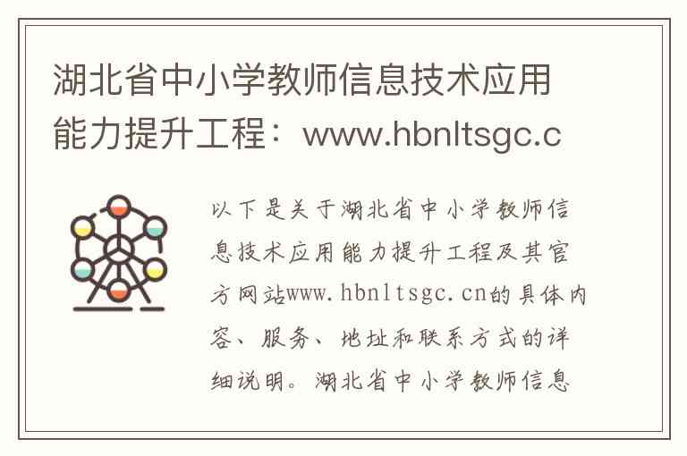 以下是关于湖北省中小学教师信息技术应用能力提升工程及其官方网站www.hbnltsgc.cn的具体内容、服务、地址和联系方式的详细说明。