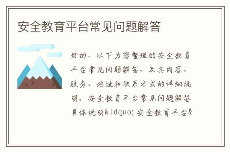 好的,以下为您整理的安全教育平台常见问题解答,及其内容、服务、地址和联系方式的详细说明。