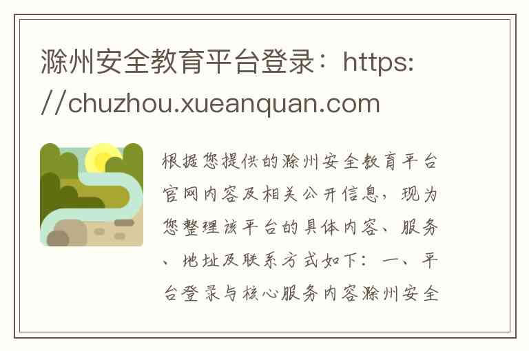 根据您提供的滁州安全教育平台官网内容及相关公开信息,现为您整理该平台的具体内容、服务、地址及联系方式如下: