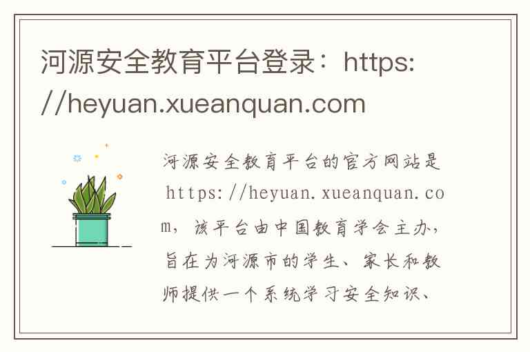 河源安全教育平台的官方网站是 https://heyuan.xueanquan.com,该平台由中国教育学会主办,旨在为河源市的学生、家长和教师提供一个系统学习安全知识、进行安全技能训练以及加强家校沟通的网络空间。