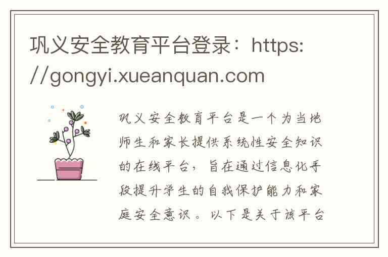 巩义安全教育平台是一个为当地师生和家长提供系统性安全知识的在线平台,旨在通过信息化手段提升学生的自我保护能力和家庭安全意识 。以下是关于该平台的登录方式、主要服务内容以及获取帮助的渠道。