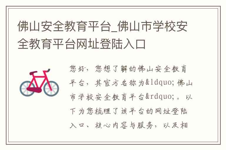 您好,您想了解的佛山安全教育平台,其官方名称为“佛山市学校安全教育平台”。以下为您梳理了该平台的网址登陆入口、核心内容与服务,以及相关的官方联系方式。