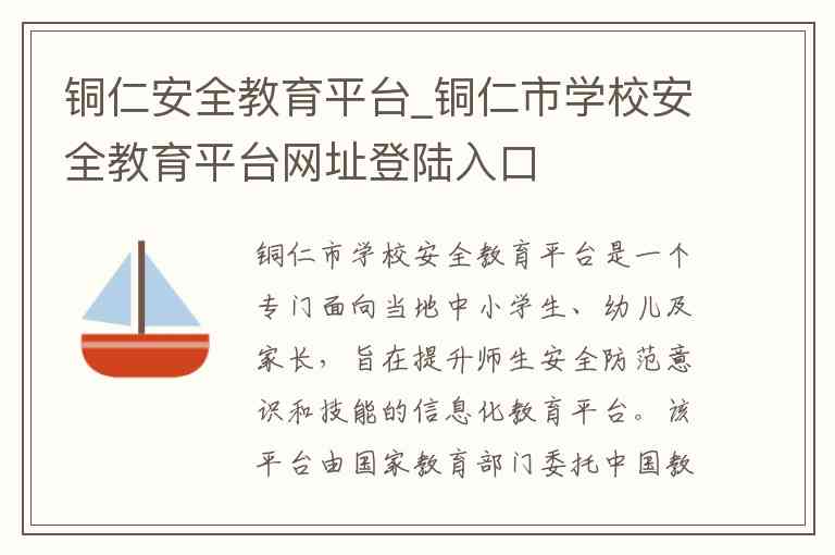 铜仁市学校安全教育平台是一个专门面向当地中小学生、幼儿及家长,旨在提升师生安全防范意识和技能的信息化教育平台。该平台由国家教育部门委托中国教育学会开发,主要用于实现安全教育的常态化、科学化和系统化管理。