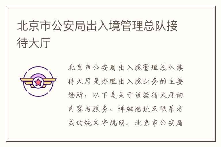 北京市公安局出入境管理总队接待大厅是办理出入境业务的主要场所,以下是关于该接待大厅的内容与服务、详细地址及联系方式的纯文字说明。