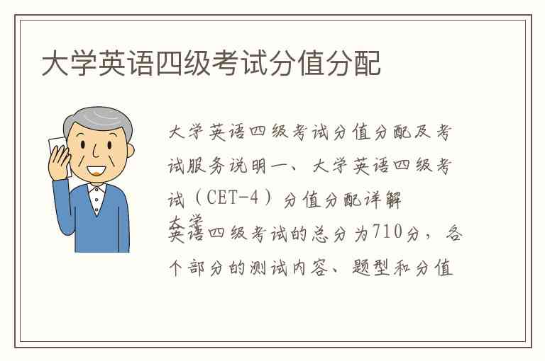 大学英语四级考试的总分为710分,各个部分的测试内容、题型和分值比例如下,这些信息有助于考生合理分配复习时间 。