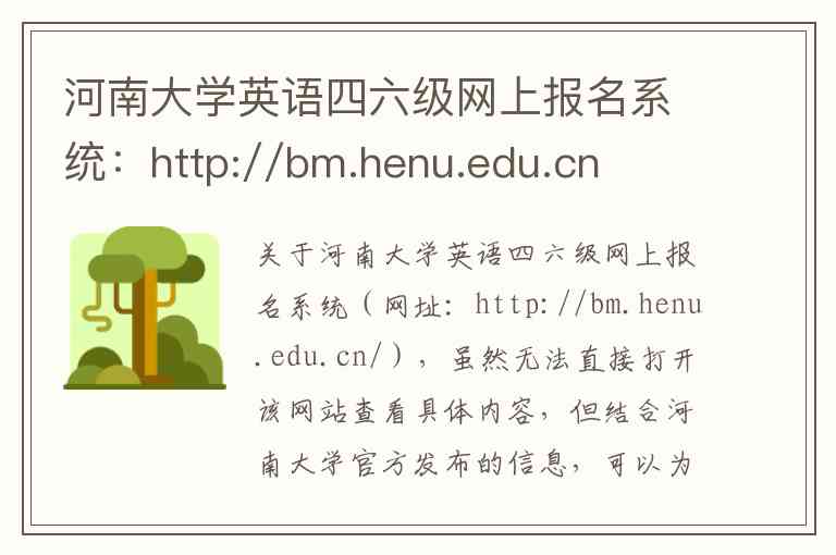 关于河南大学英语四六级网上报名系统(网址:http://bm.henu.edu.cn/),虽然无法直接打开该网站查看具体内容,但结合河南大学官方发布的信息,可以为您详细介绍其服务、官方渠道和联系方式。