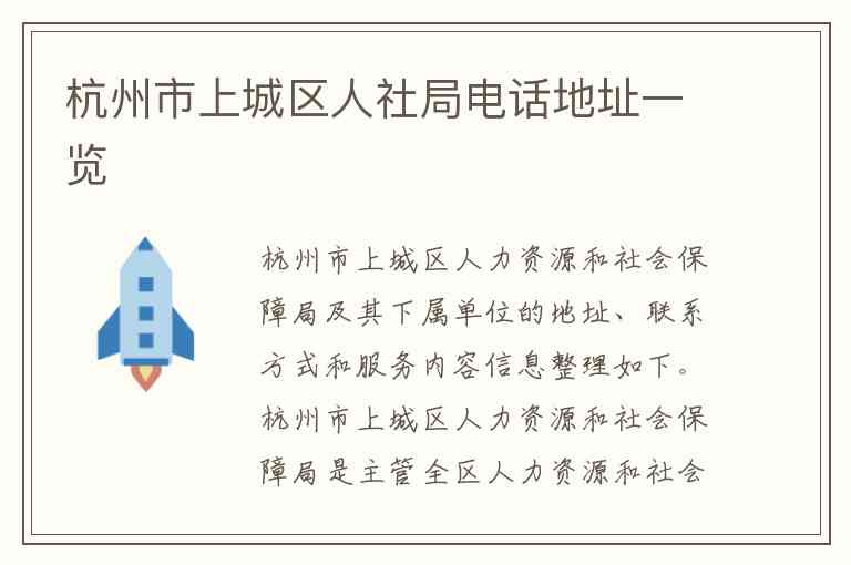 杭州市上城区人力资源和社会保障局及其下属单位的地址、联系方式和服务内容信息整理如下。