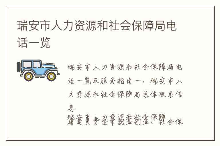 瑞安市人力资源和社会保障局是负责全市就业创业、社会保险、人才人事、劳动关系等工作的政府部门。其核心联系信息如下: