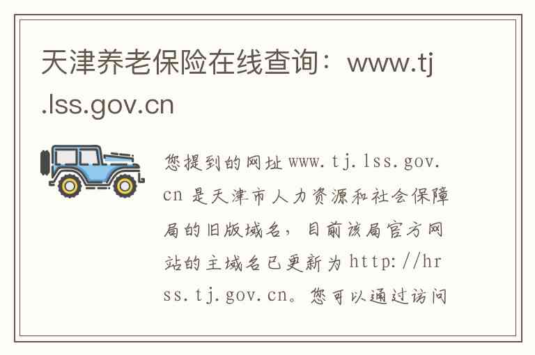 您提到的网址 www.tj.lss.gov.cn 是天津市人力资源和社会保障局的旧版域名,目前该局官方网站的主域名已更新为 http://hrss.tj.gov.cn。您可以通过访问这个新域名,在网站首页找到“社会保险网上经办”等相关入口,进入个人网上办事大厅查询您的养老保险信息。