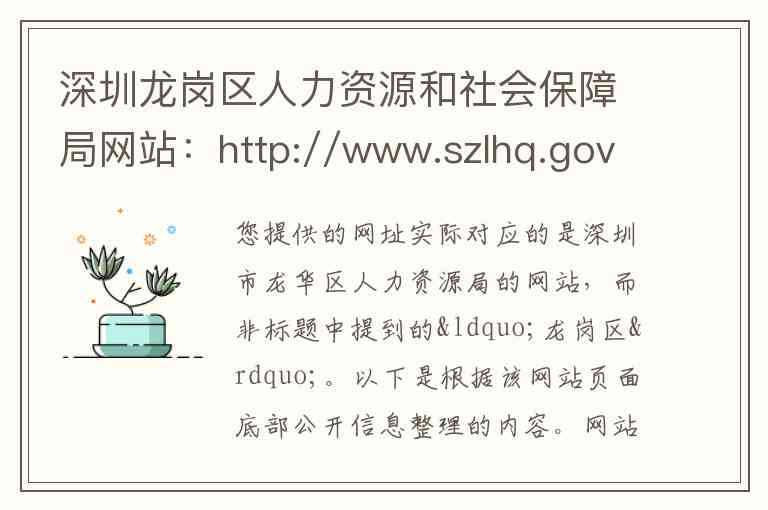您提供的网址实际对应的是深圳市龙华区人力资源局的网站,而非标题中提到的“龙岗区”。以下是根据该网站页面底部公开信息整理的内容。