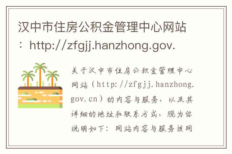 关于汉中市住房公积金管理中心网站(http://zfgjj.hanzhong.gov.cn)的内容与服务,以及其详细的地址和联系方式,现为你说明如下: