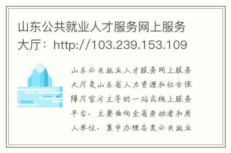 1 主要推荐地址 http://ggjyrc.hrss.shandong.gov.cn/sdjyweb/index.action 或 https://ggjyrc.hrss.shandong.gov.cn/sdjyweb/index.action