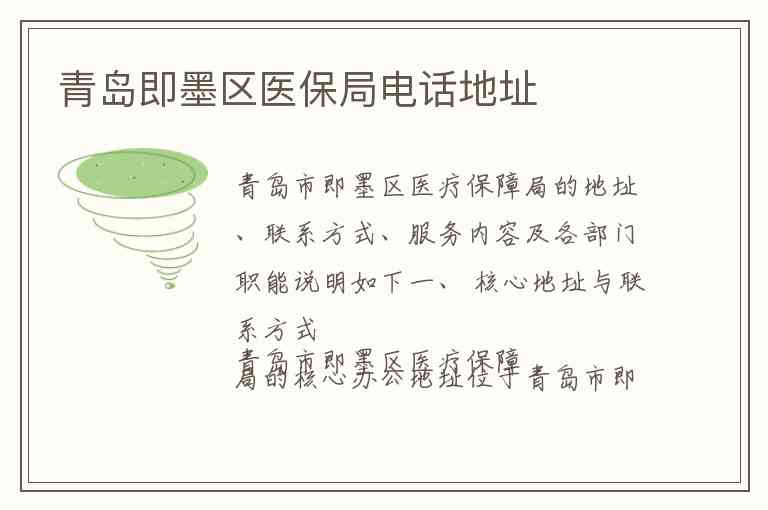 青岛市即墨区医疗保障局的核心办公地址位于青岛市即墨区宁东路166号科创中心。主要的联系电话根据业务类型有所不同,具体如下: