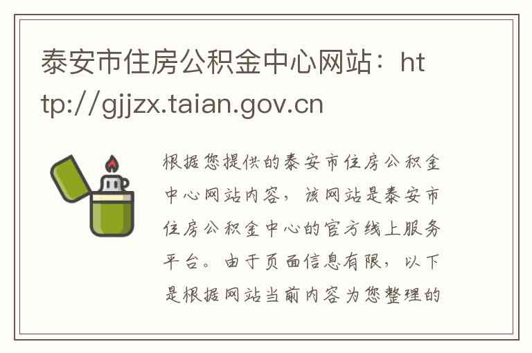 根据您提供的泰安市住房公积金中心网站内容,该网站是泰安市住房公积金中心的官方线上服务平台。由于页面信息有限,以下是根据网站当前内容为您整理的服务介绍,以及为您查找的该中心联系方式。