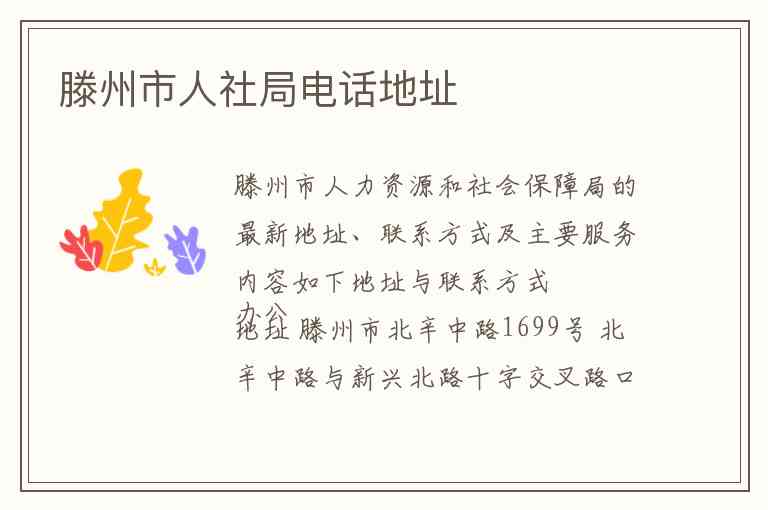 滕州市人力资源和社会保障局的最新地址、联系方式及主要服务内容如下