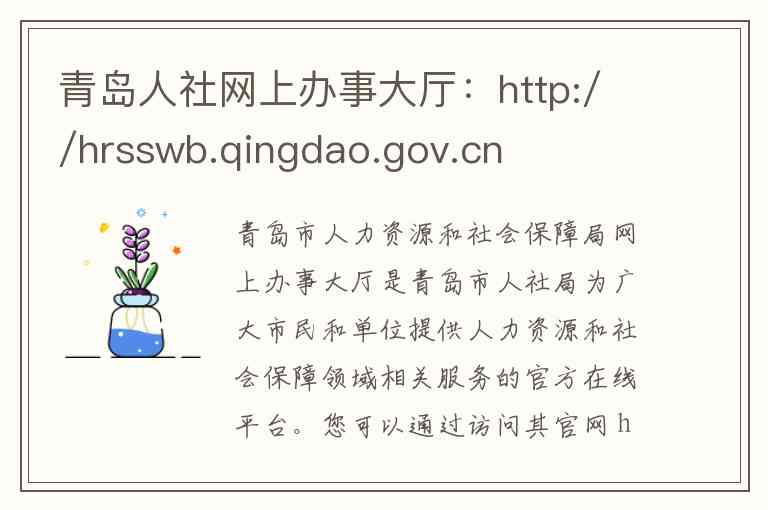 青岛市人力资源和社会保障局网上办事大厅是青岛市人社局为广大市民和单位提供人力资源和社会保障领域相关服务的官方在线平台。您可以通过访问其官网 http://hrss.qingdao.gov.cn 进入“网上办事大厅”办理业务。