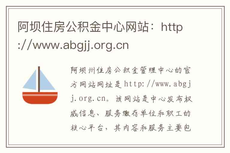 阿坝州住房公积金管理中心的官方网站网址是 http://www.abgjj.org.cn。该网站是中心发布权威信息、服务缴存单位和职工的核心平台,其内容和服务主要包括以下几个方面: