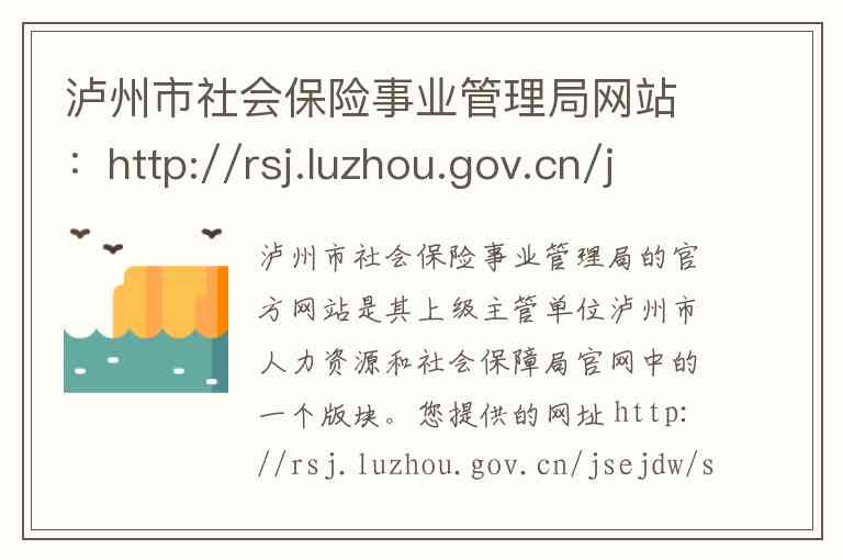 泸州市社会保险事业管理局的官方网站是其上级主管单位泸州市人力资源和社会保障局官网中的一个版块。您提供的网址 http://rsj.luzhou.gov.cn/jsejdw/ssbj 是准确的,通过该网址可以访问到泸州市社会保险事业管理局的官方页面,获取各类社保信息和服务。