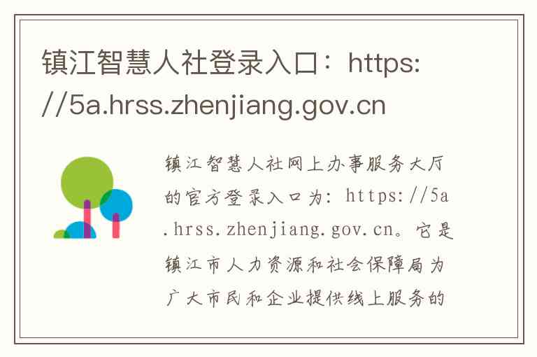 镇江智慧人社网上办事服务大厅的官方登录入口为:https://5a.hrss.zhenjiang.gov.cn。它是镇江市人力资源和社会保障局为广大市民和企业提供线上服务的核心门户,集成了多项智能化、便捷化的人社服务。