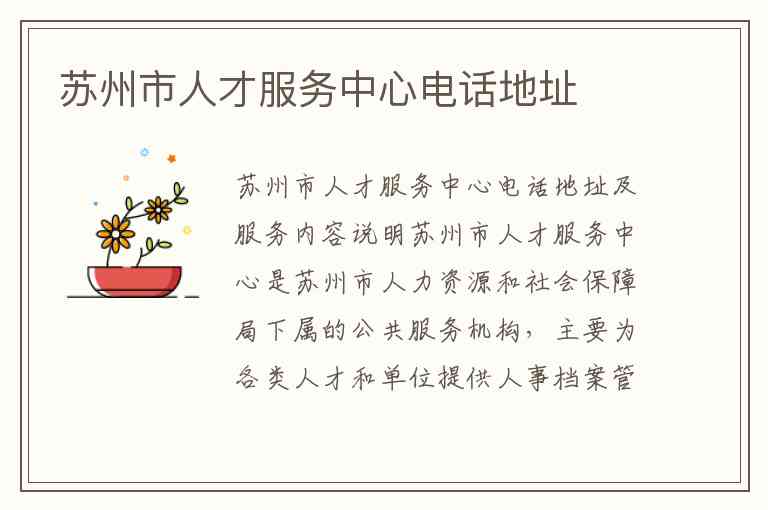 苏州市人才服务中心电话地址及服务内容说明