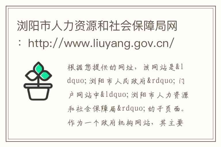 根据您提供的网址,该网站是“浏阳市人民政府”门户网站中“浏阳市人力资源和社会保障局”的子页面。作为一个政府机构网站,其主要功能是发布信息和服务指南。