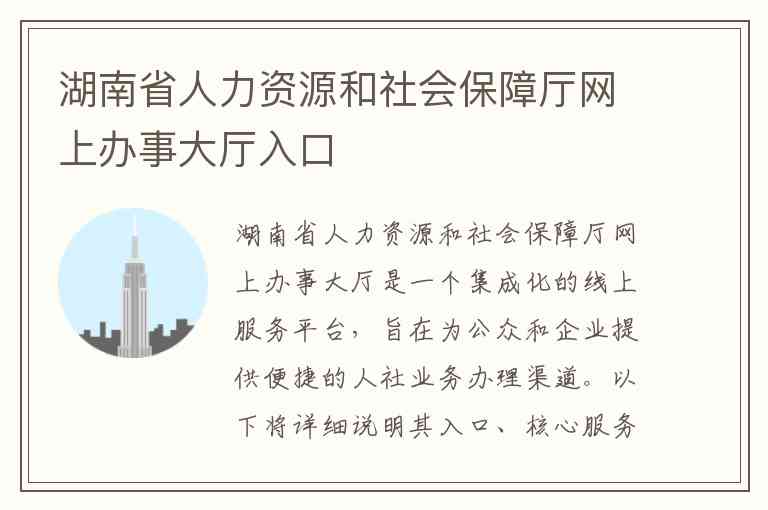 湖南省人力资源和社会保障厅网上办事大厅是一个集成化的线上服务平台,旨在为公众和企业提供便捷的人社业务办理渠道。以下将详细说明其入口、核心服务内容、地址及联系方式。