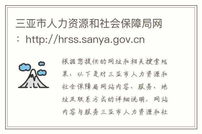根据您提供的网址和相关搜索结果,以下是对三亚市人力资源和社会保障局网站内容、服务、地址及联系方式的详细说明。