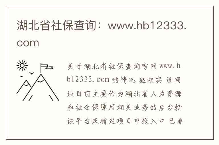 关于湖北省社保查询官网 www.hb12333.com 的情况 经核实 该网址目前主要作为湖北省人力资源和社会保障厅相关业务的后台验证平台及特定项目申报入口 已非面向公众提供综合查询服务的主门户网站