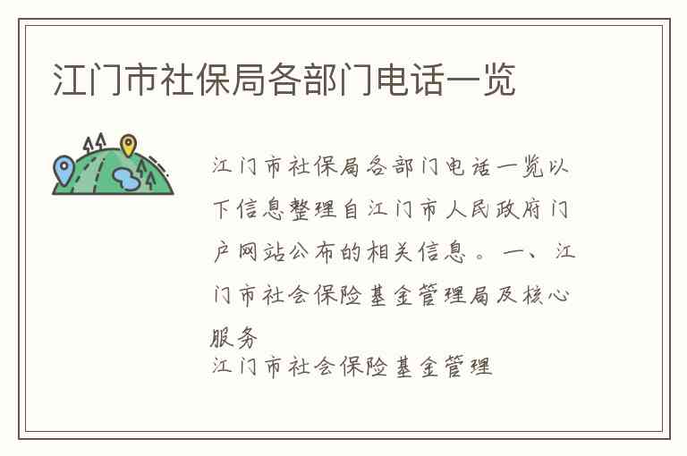 江门市社保局各部门电话一览
