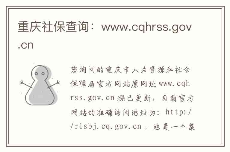 您询问的重庆市人力资源和社会保障局官方网站原网址 www.cqhrss.gov.cn 现已更新,目前官方网站的准确访问地址为:http://rlsbj.cq.gov.cn 。这是一个集信息发布、在线办事、互动交流于一体的政务服务平台。以下为您详细介绍其内容服务、地址及联系方式。