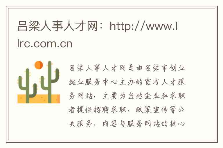 吕梁人事人才网是由吕梁市创业就业服务中心主办的官方人才服务网站,主要为当地企业和求职者提供招聘求职、政策宣传等公共服务。