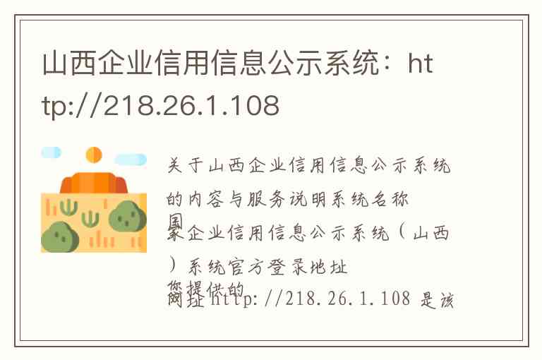 您提供的网址 http://218.26.1.108 是该系统的IP访问地址之一,系统的主要官方入口通常为:http://sx.gsxt.gov.cn 。