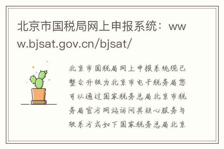 北京市国税局网上申报系统现已整合升级为北京市电子税务局您可以通过国家税务总局北京市税务局官方网站访问其核心服务与联系方式如下