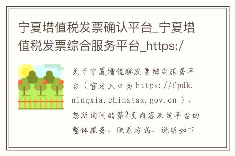 关于宁夏增值税发票综合服务平台(官方入口为 https://fpdk.ningxia.chinatax.gov.cn ),您所询问的第2页内容及该平台的整体服务、联系方式,说明如下。