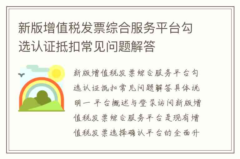 新版增值税发票综合服务平台勾选认证抵扣常见问题解答具体说明