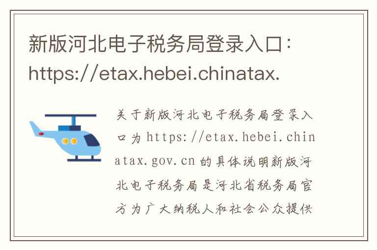 关于新版河北电子税务局登录入口为 https://etax.hebei.chinatax.gov.cn 的具体说明