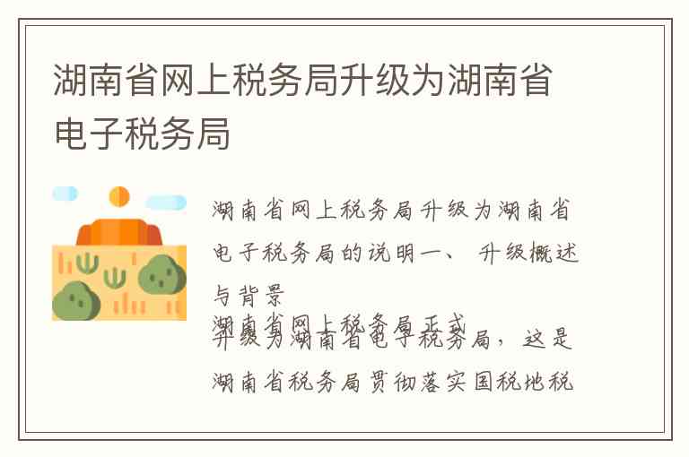 湖南省网上税务局升级为湖南省电子税务局的说明