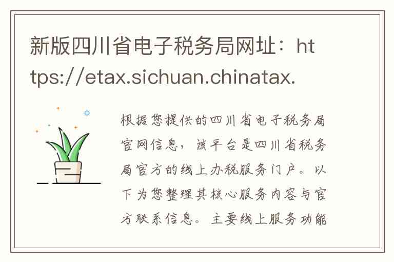 根据您提供的四川省电子税务局官网信息,该平台是四川省税务局官方的线上办税服务门户。以下为您整理其核心服务内容与官方联系信息。