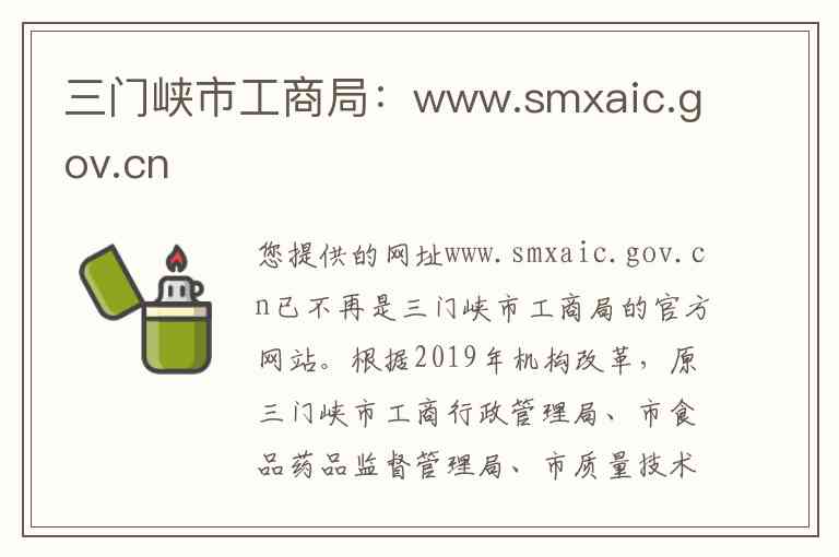 您提供的网址www.smxaic.gov.cn已不再是三门峡市工商局的官方网站。根据2019年机构改革,原三门峡市工商行政管理局、市食品药品监督管理局、市质量技术监督局等部门已整合,组建为三门峡市市场监督管理局。因此,原工商局的职能和服务现已统一由三门峡市市场监督管理局承接。以下是关于该新机构的详细说明。