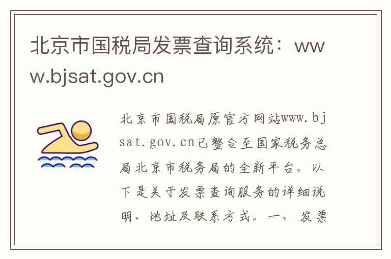 北京市国税局原官方网站www.bjsat.gov.cn已整合至国家税务总局北京市税务局的全新平台。以下是关于发票查询服务的详细说明、地址及联系方式。