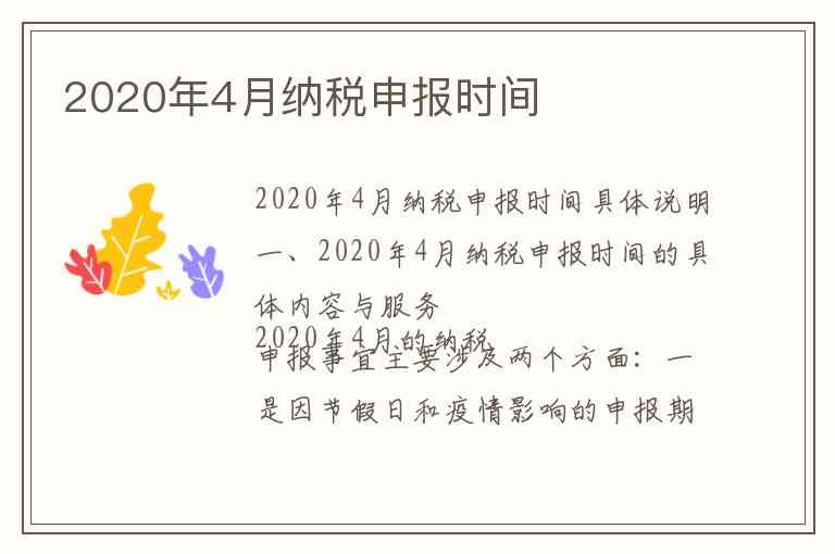 一、2020年4月纳税申报时间的具体内容与服务