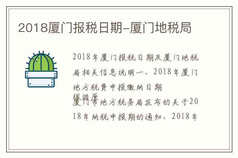 2018年厦门报税日期及厦门地税局相关信息说明