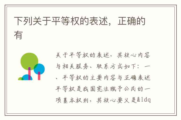 关于平等权的表述,其核心内容与相关服务、联系方式如下: