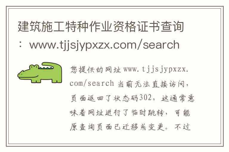 您提供的网址 www.tjjsjypxzx.com/search 当前无法直接访问,页面返回了状态码302,这通常意味着网址进行了临时跳转,可能原查询页面已迁移或变更。不过,通过查询与该网站相关的公开信息,可以为您梳理出关于其主办单位“天津建设教育培训中心”所提供的服务、证书查询的正确官方渠道以及联系方式。