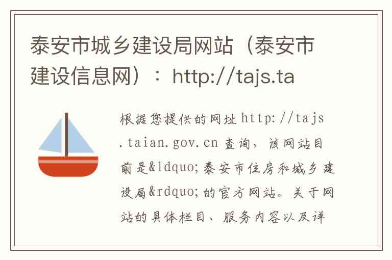 根据您提供的网址 http://tajs.taian.gov.cn 查询,该网站目前是“泰安市住房和城乡建设局”的官方网站。关于网站的具体栏目、服务内容以及详细的联系方式,信息整理如下: